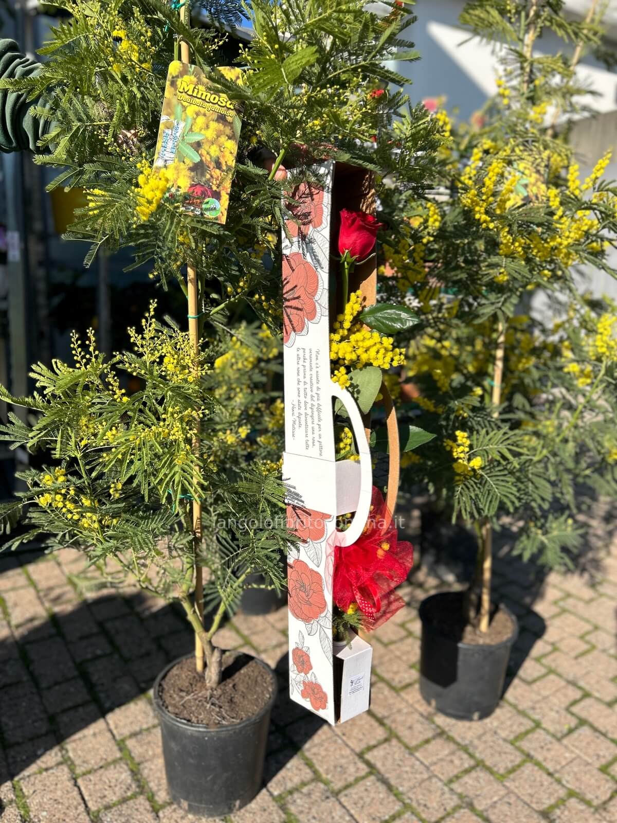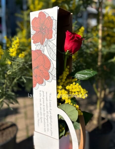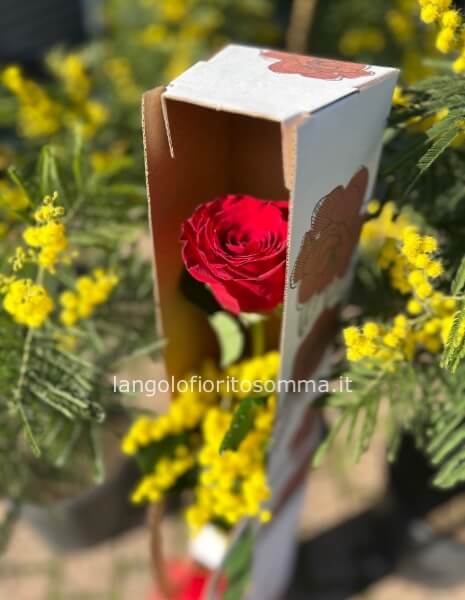 | Flowerbox con rosa rossa e mimosa Cod. 74299 | € 23,00 | Quantità : | |